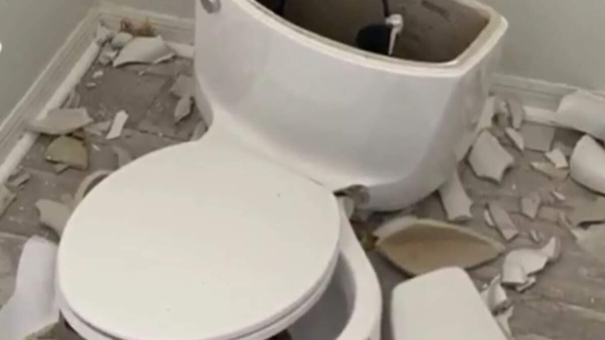 "We come in here, and the toilet was laying on the floor," Ward said. "There's all pieces everywhere. Pieces everywhere."